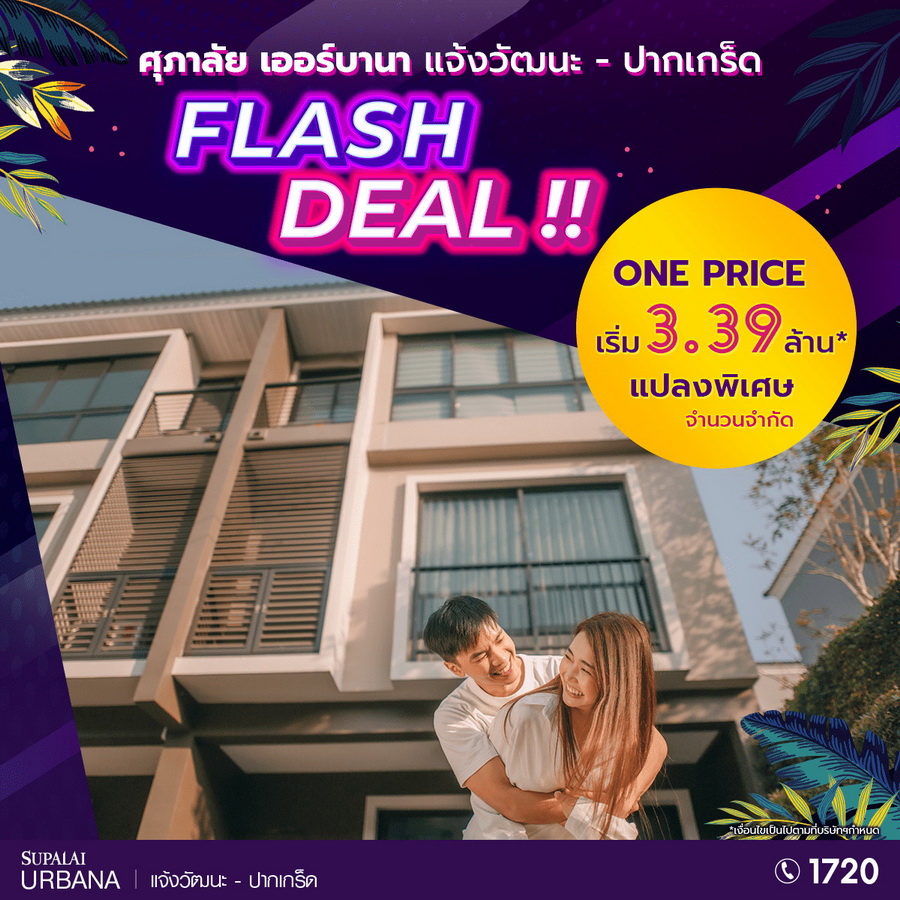 ศุภาลัย เออร์บานา แจ้งวัฒนะ-ปากเกร็ด มอบแคมเปญ Flash Deal !! ราคาสุดพิเศษเริ่มเพียง 3.39 ล้านบาท