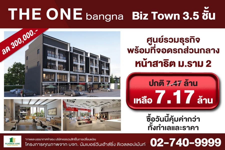 นัมเบอร์วันเฮ้าส์ซิ่ง ดิเวลลอปเม้นท์ เปิดจอง THE ONE bangna Biz town 3.5 ชั้น เริ่ม 7.17 ล้านบาท