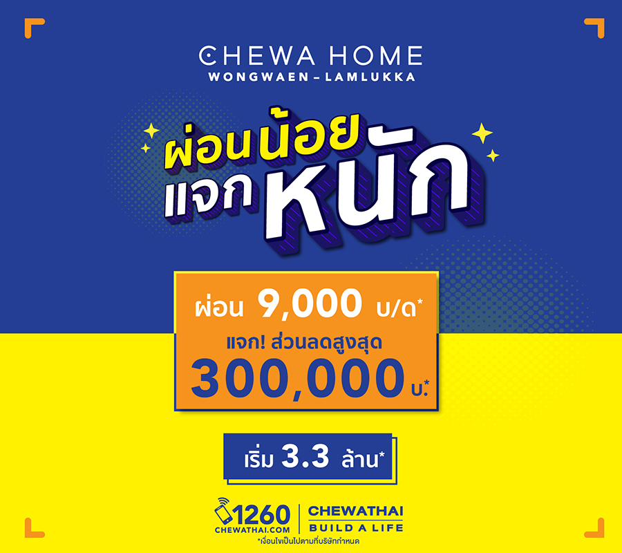 ชีวาโฮม วงแหวน - ลำลูกกา" ผ่อน 9,000 บาท/เดือน แจกส่วนลดสูงสุด 300,000 บาท เริ่ม 3.3 ล้านบาท