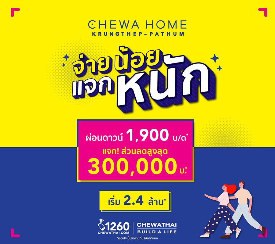ชีวาโฮม กรุงเทพ - ปทุม" ผ่อนดาวนฺ์ 1,900 บาท/เดือน แจกส่วนลดสูงสุด 300,000 บาท เริ่ม 2.4 ล้านบาท