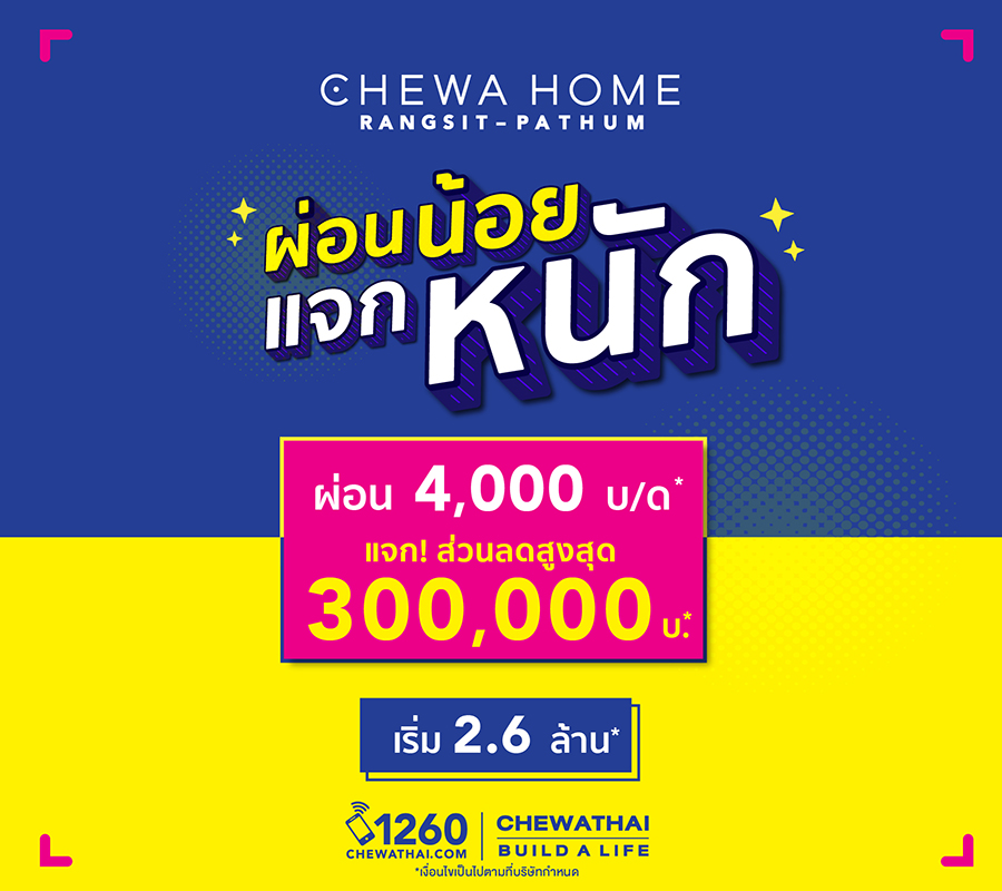 ชีวาโฮม รังสิต - ปทุม" ผ่อน 4,000 บาท/เดือน แจกส่วนลดสูงสุด 300,000 บาท เริ่ม 2.6 ล้านบาท