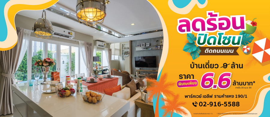 พาร์คเวย์ เอลีฟ รามคำแหง 190/1 บ้านเดี่ยว 4 นอน ติดถนนเมน ราคาพิเศษเพียง 6.6 ล้านบาท