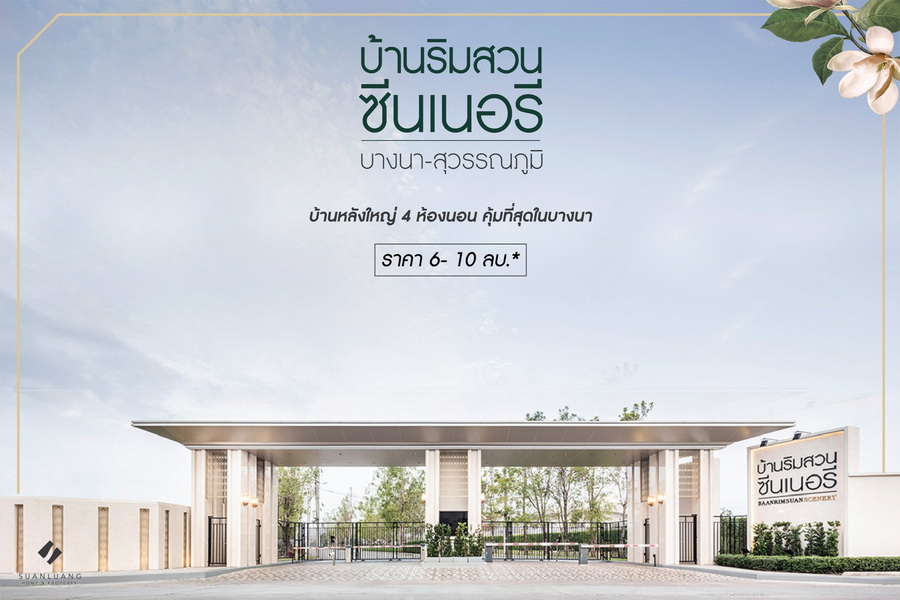 Suanluang Home and Property จัดโปรโมชั่นสุดคุ้มค่ากับโครงการ "บ้านริมสวน ซีนเนอรี่ บางนา - สุวรรณภูมิ" บ้านที่ให้คุณคุ้มที่สุดในย่านบางนา พิเศษ! ซื้อ 1 ได้ถึง 2 รับฟรี! Mazda 2 รวมมูลค่าสูงสุด 600,000 บาท รับเพิ่มทันที iPhone 12 อีก 1 เครื่อง โปรโมชั่นขยายสิทธิถึง 30 มิถุนายน 2564 นี้เท่านั้นราคา 6 - 10 ล้านบาทลงทะเบียนรับสิทธิพิเศษได้ที่ลิงก์ด้านล่าง"บ้านริมสวน ซีนเนอรี่ บางนา - สุวรรณภูมิ" บ้าน 4 ห้องนอน บรรยากาศสงบ Oasis แห่งย่าน East District ใส่ใจทุกรายละเอียด พื้นที่ใช้สอย 138-203 ตร.ม. ใช้ระบบก่อฉาบด้วย EKOBLOK ทำให้บ้านเย็น สามารถต่อเติมได้ และยังวางบ้านทิศเหนือ-ใต้ รับลมได้ตลอดทั้งปี ไม่มีซอยเล็ก ติดถนนหลักทุกยูนิต พื้นที่ส่วนกลางถึง 2 ไร่ กระจาย 2 จุดทั่วโครงการ