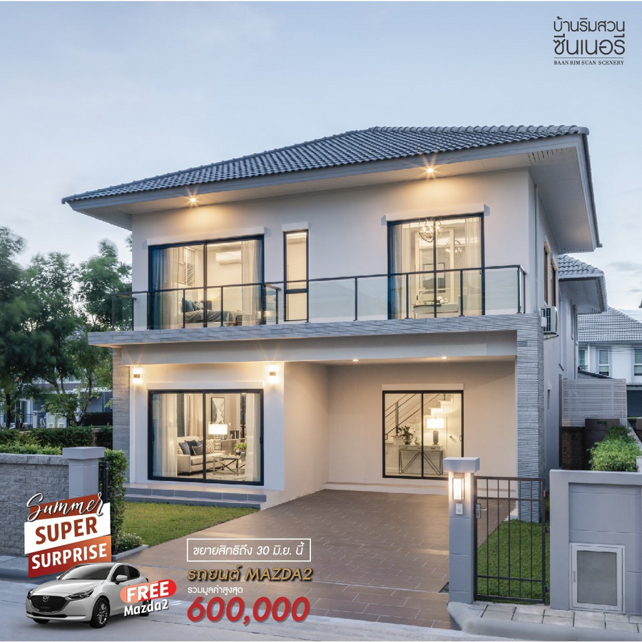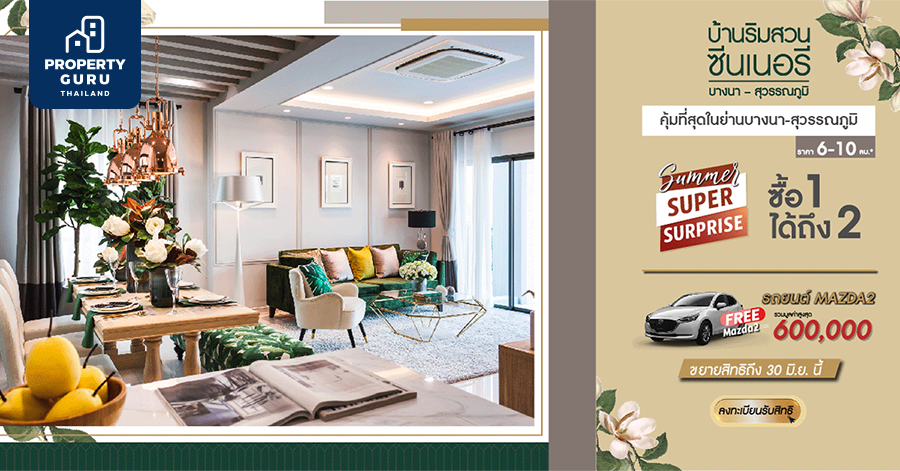 "บ้านริมสวน ซีนเนอรี่ บางนา - สุวรรณภูมิ" บ้านเดี่ยว 4 ห้องนอน โปรฯขยายสิทธิ์ ถึง 30 มิ.ย. นี้ ฟรี! Mazda 2 ราคาเริ่มต้น 6 ลบ.