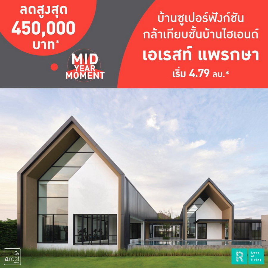 "เอเรสท์ แพรกษา (Arest Praksa)" บ้านเล่นระดับที่มาพร้อมฟังก์ชันครบครัน อยู่ติดถนนใหญ่แพรกษา ให้โปรสุดปัง ทั้งลดทั้งแจก ส่วนลด 450,000 บาท* ของแถมอีก 9 รายการ* บ้านโครงการใหม่ ที่สะท้อนความหรูหรา ในดีไซน์ที่หาไม่ได้จากที่ไหน เริ่ม 4.79 ล้านบาท*