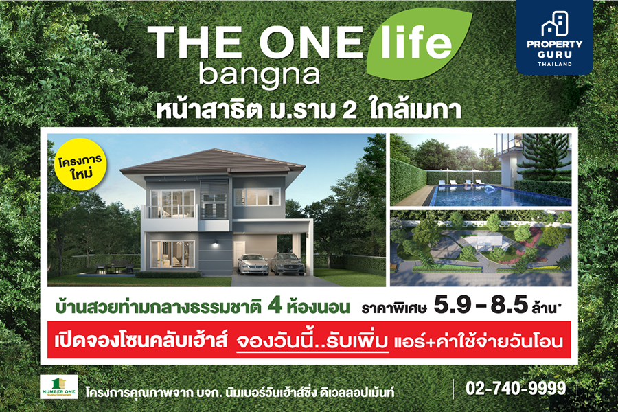 THE ONE life bangna บ้านโครงการใหม่ หน้าสาธิต ม.ราม 2 ใกล้เมกา เปิดจองโซนคลับเฮาส์