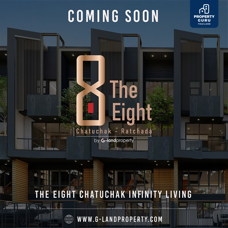 บริษัท จี แลนด์ พร็อพเพอร์ตี้ จำกัด แนะนำโครงการใหม่ THE EIGHT Chatuchak - Ratchada (ดิ เอท จตุจักร - รัชดา) บ้าน 3.5 ชั้น สไตล์โมเดิร์น Privacy Residence เอกสิทธิ์เพียง 8 ครอบครัว บนทำเล Extremely Rare ตอบโจทย์การอยู่อาศัยที่สมบูรณ์แบบ (Perfectionist Living) กับงานออกแบบที่ชาญฉลาด และประณีต ในทุกรายละเอียด ลงตัวกับการปรับเปลี่ยนฟังก์ชั่นภายในบ้านได้อย่าง "อิสระ" พร้อมพื้นที่พักผ่อนที่คุณจะค้นพบคำตอบของคำว่า "ชีวิตส่วนตัว" 3 ห้องนอน 4 ห้องน้ำ 2 ที่จอดรถ ห้องนั่งเล่น ห้องทานอาหาร Pantry และ Flexible Space บนชั้นลอย พื้นที่สำหรับเติมเต็มและต่อยอดงานอดิเรกทุกไลฟ์สไตล์