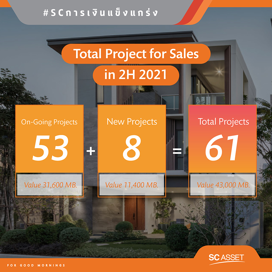 โดย ณ 30 มิย 64 บริษัทมีสินทรัพย์รวม 46,827 ล้านบาท และหนี้สินรวม 27,952 ล้านบาท และมีอัตราส่วนหนี้สิน/ทุน (D/E) เท่ากับ 1.48 นอกจากนี้ภายใต้งบซื้อที่ดินใหม่รวมทั้งปี 10,000 ล้านบาท บริษัทจะจัดซื้อที่ดินเพื่อพัฒนาโครงการแนวราบเป็นหลัก สำหรับรองรับการเติบโตในปี 2565-2567 บริษัทมั่นใจว่า ผลการดำเนินงานปีนี้จะทำได้สำเร็จตามเป้าหมายจาก 61 โครงการเพื่อขายทั้งหมดในครึ่งปีหลัง ซึ่งมีมูลค่าโครงการวมกว่า 43,000 ล้านบาท ประกอบด้วย โครงการที่ขายต่อเนื่อง จำนวน 53 โครงการ มูลค่า 31,600 ล้านบาท แบ่งเป็นแนวราบ 45 โครงการ มูลค่า 19,900 ล้านบาท และ คอนโด 8 โครงการ มูลค่า 11,700 ล้านบาท และโครงการเปิดใหม่ 8 โครงการ มูลค่าโครงการรวม 11,400 ล้านบาท