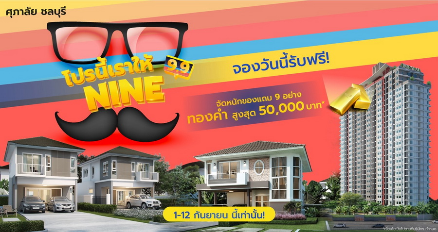 9.9 "โปรนี้เราให้ NINE" ศุภาลัย เรา ให้เลย กับศุภาลัย จ.ชลบุรี บ้าน และคอนโดฯ 12 โครงการ