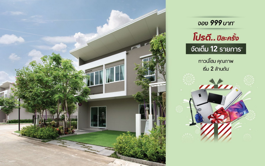 โปรโมชั่น เล่นใหญ่ #เปย์แหลกแจกหนัก 9 รายการ บ้านเดี่ยว บ้านแฝด และ ทาวน์โฮม พร้อมเข้าอยู่ ราคาพิเศษ 2.09 - 8 ล้านบาท*