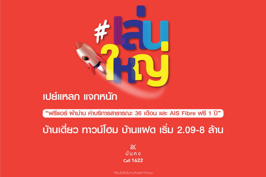 - ฟรี อินเตอร์เน็ตไฟเบอร์ AIS นาน 1 ปี