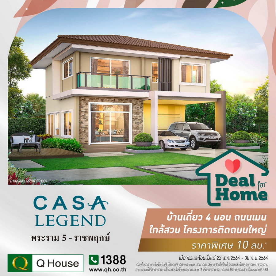www.qh.co.th (*เงื่อนไขราคาและโปรโมชั่นเป็นไปตามที่บริษัทฯกำหนด สามารถเปลี่ยนแปลงได้โดยไม่ต้องแจ้งให้ทราบล่วงหน้า สอบถามรายละเอียดเพิ่มเติมที่สำนักงานขาย การพิจารณาอนุมัติวงเงินกู้ขึ้นอยู่กับคุณสมบัติของผู้กู้และต้องเป็นไปตามเงื่อนไขที่ธนาคารกำหนด เมื่อจองและโอนตั้งแต่วันที่ 23 ส.ค. 2564 – 30 ก.ย. 2564)