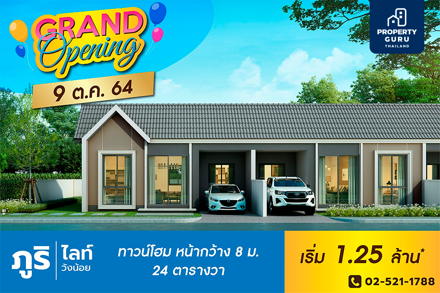9 ต.ค. นี้ Grand Opening โครงการภูริ วังน้อย ทาวน์โฮมชั้นเดียว 1.25 ลบ. พร้อมรับข้อเสนอพิเศษภายในงาน