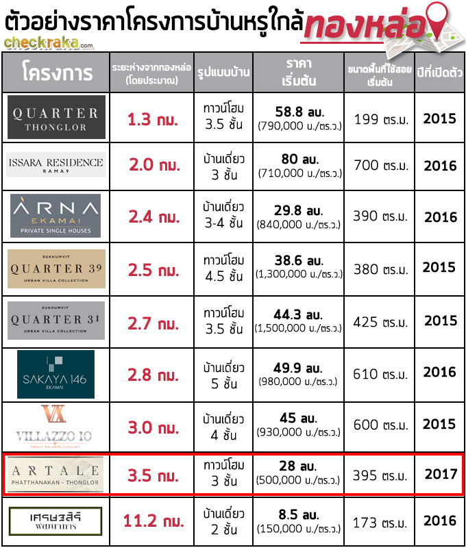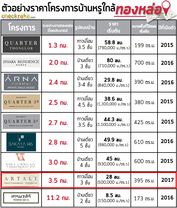 ตัวอย่างราคาโครงการบ้านหรูใกล้ "ทองหล่อ"