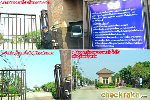 ขั้นตอนระบบรักษาความปลอดภัยของทางโครงการพร้อมพนักงานรักษาความปลอดภัย คอยติดตามรายงานการเข้าพบของผู้มาติดต่อว่าตรงกับบ้านตามที่ได้แจ้งไว้หรือไม่