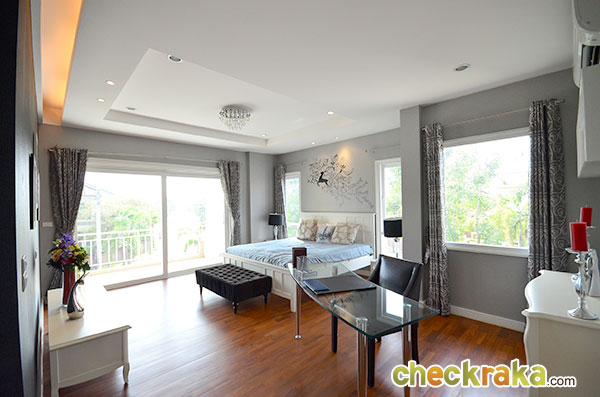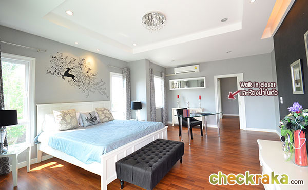 มาเริ่มกันที่ฝั่งซ้ายมือของบ้านกับห้อง Master Bedroom ที่กินพื้นที่ฝั่งซ้ายของบ้านไปทั้งแถบเลยค่ะ