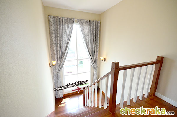 ขึ้นมาที่โถงบันไดบ้านชั้น 2 กันค่ะ ตกแต่งแล้วด้วยการใส่ม่านยาวเข้าไป