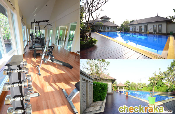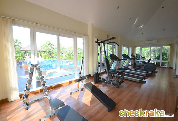 - ฟิตเนสพร้อมอุปกรณ์ออกกำลังกายวิวสระว่ายน้ำ