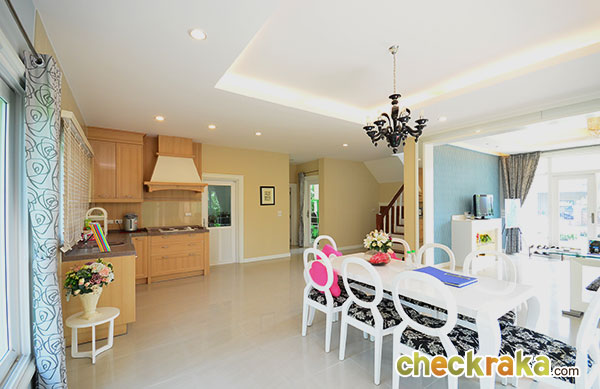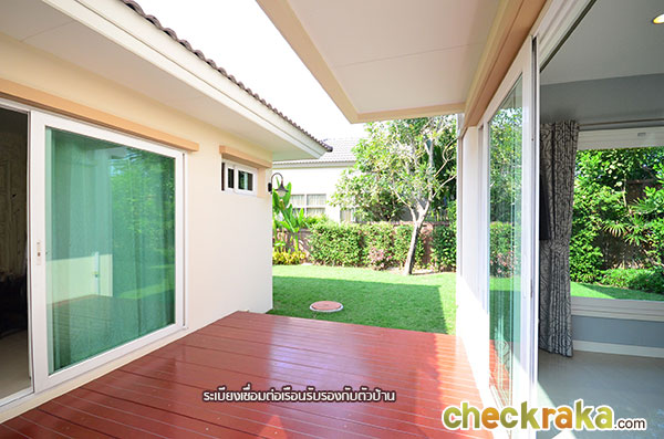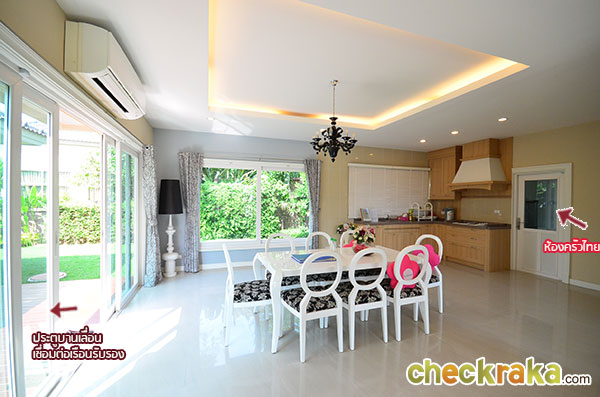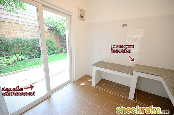 (ออกจากประตูบานเลื่อนไปทางหลังบ้าน ห้องที่อยู่ติดกับห้องครัวไทยคือห้องนอนแม่บ้านที่แยกทางเข้า-ออกไปด้านข้าง)
