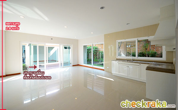 และประตูบานเลื่อนใหญ่มาให้ทำครัวหนักกันได้เต็มที่ค่ะ ส่วนพื้นของครัวไทยจะใช้กระเบื้องสีเข้มปูค่ะ