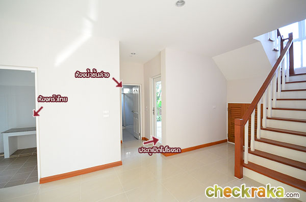 โถงที่ชั้น 1 ของบ้านเปล่าแสดงฟังก์ชั่นการใช้งานของห้องต่างๆ ภายในบ้านค่ะ