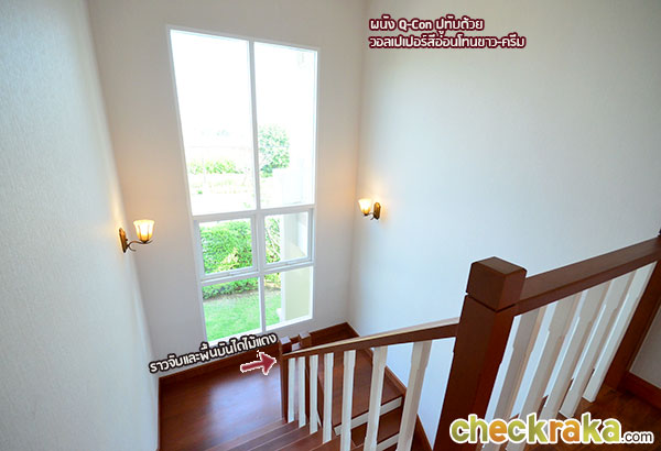 วอลเปเปอร์เป็นแบบเล่นสี ตัดกัน ซึ่งเป็นเทคนิคที่เค้าแต่งโชว์ค่ะ เพราะบ้านเปล่าที่ขายเค้าจะแถมเป็นวอลเปเปอร์