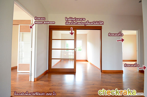 ส่วนบ้านเปล่าโถงตรงกลางนี้ทางโครงการเค้าทำประตูบานเลื่อนไม้มาให้ค่ะ เผื่อใครชอบความเป็นสัดส่วน