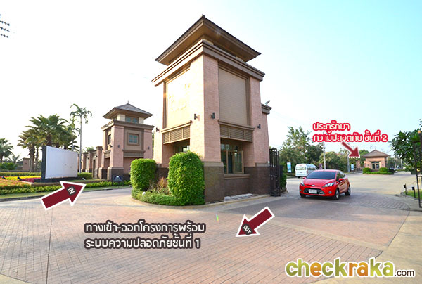 ทางเข้า-ออกหลักของโครงการพร้อมระบบรักษาความปลอดภัยสองชั้น ประตูชั้นแรกเปิดเพื่อให้ผู้มาติดต่อรออยู่ที่คลับเฮ้าส์ หากต้องการจะเข้าไปในส่วนที่พักอาศัยต้องผ่านประตูชั้นที่สองเข้าไปก่อน