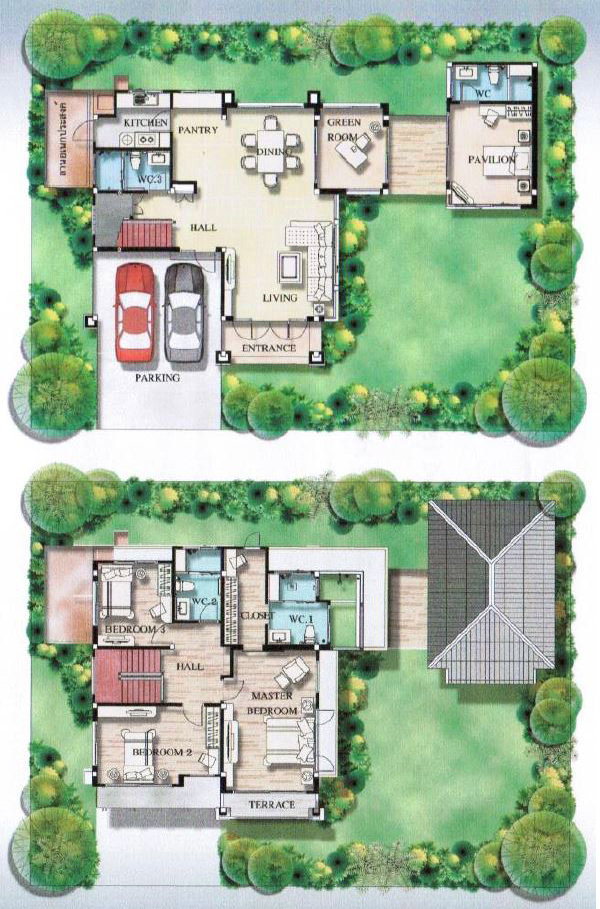 - แบบบ้าน Begonia ขนาดที่ดิน 123 ตร.ว. พื้นที่ใช้สอย 336 ตร.ม. 3 ห้องนอน, 4 ห้องน้ำ, 2 ที่จอดรถ, 1 ห้องพักผ่อนและ 1 ห้องคนรับใช้