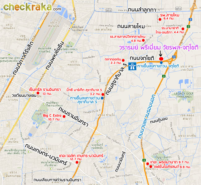 - ที่ตั้งโครงการ 92 ถ.วัชรพล-จตุโชติ แขวงออเงิน เขตสายไหม กรุงเทพ