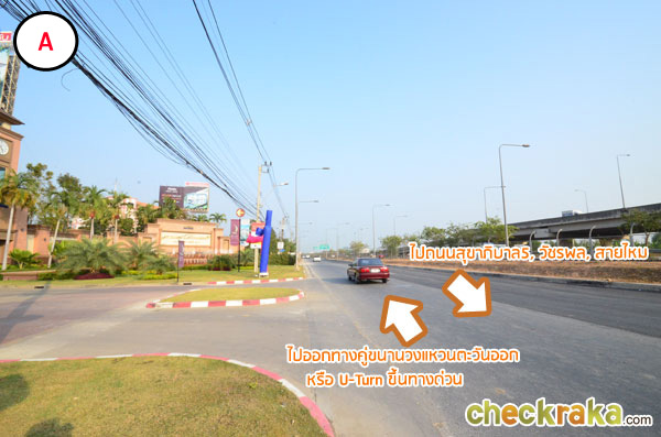 เดี๋ยวเราจะต้องวิ่งเข้าถนนข้างทางด่วนแล้วกลับรถเพื่อมาที่โครงการอีกทีนึง