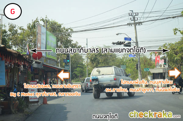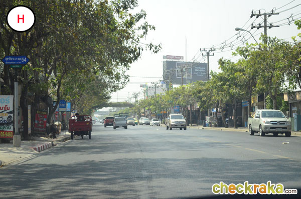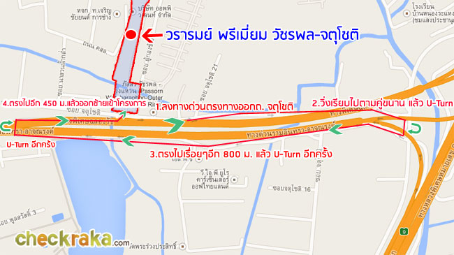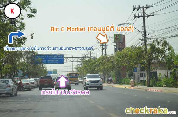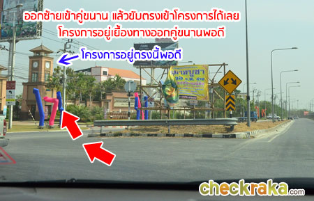 หลังจากกลับรถมาแล้ว ตรงมาอีกประมาณ 450 ม. เตรียมชิดซ้ายออกถนนจตุโชติเพื่อเข้าโครงการ