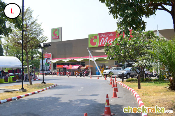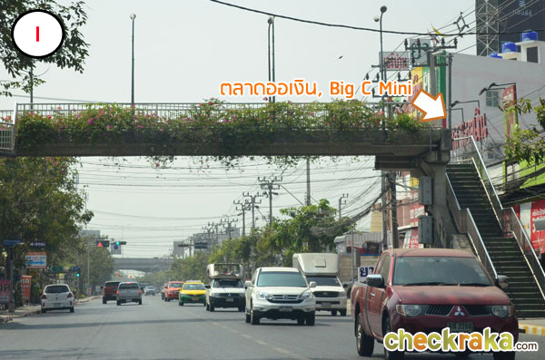 ตรงมาจากแยกจตุโชติ ประมาณ 250 ม. มองไปทางขวาก็จะเป็นตลาดออเงิน และ Mini Big C ตรงสะพานลอยคนข้ามพอดี