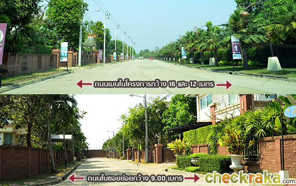 ภาพแสดงขนาดของถนนเมน และถนนในซอยย่อยของทางโครงการ