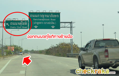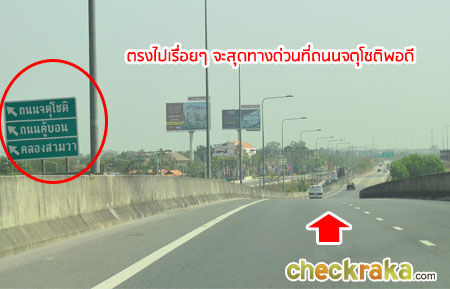 ตรงไปเรื่อยๆ จะสุดทางด่วนที่ถนนจตุโชติพอดี สังเกตจะมีป้ายบอกทางซ้าย