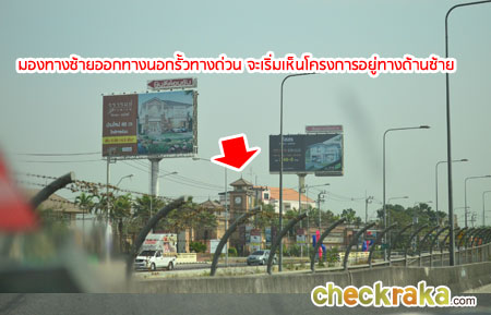 หากมองมาทางซ้ายตรงรั้วนอกทางด่วนจะเริ่มเห็นโครงการอยู่ทางซ้าย แต่ทางออกทางด่วนจะเลยโครงการไปนิดนึง