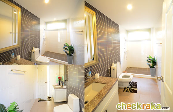 ออกมาจากห้องนอนที่ 2 จะเจอกับห้องน้ำที่ชั้นบนของบ้าน ตกแต่งแนวเดียวกันทั้งหลัง