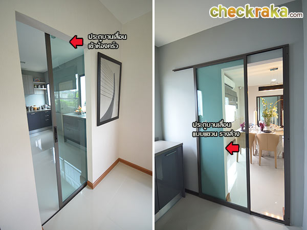 ส่วนห้องครัวใช้ประตูบานเลื่อนเปิดเข้า-ออกค่ะ