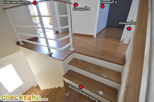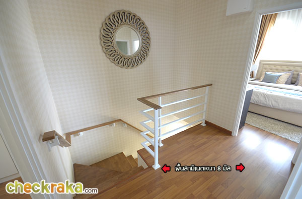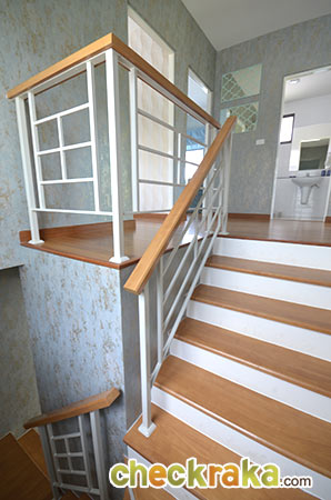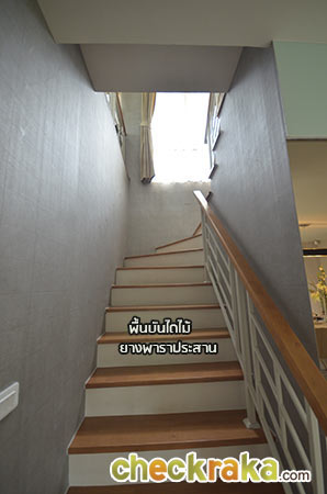 ส่วนหน้าพื้นบันไดเป็นไม้ยางพาราประสานทำสีเหมือนบ้านเดี่ยวค่ะ