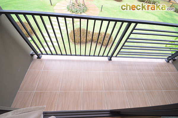 ขนาดของระเบียงหน้าบ้านที่เปิดออกมาจากประตูเลื่อนโซน Family Room