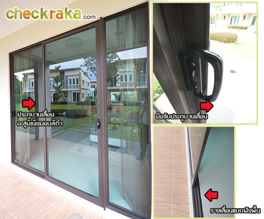 (บานประตูหน้าต่างของบ้าน Type นี้ ใช้เป็นบานประตูบานเลื่อนอะลูมิเนียมอบสีดำแบบคุณภาพสูง