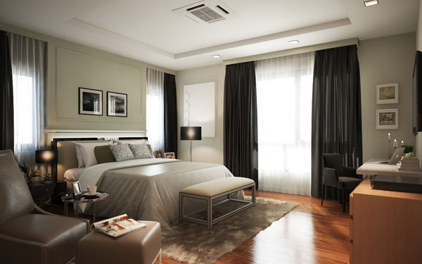 ห้องนอนมาสเตอร์เบดรูมความสูงจากพื้นจรดเพดานสูงถึงเกือบ 3 เมตรเลยทีเดียวค่ะ