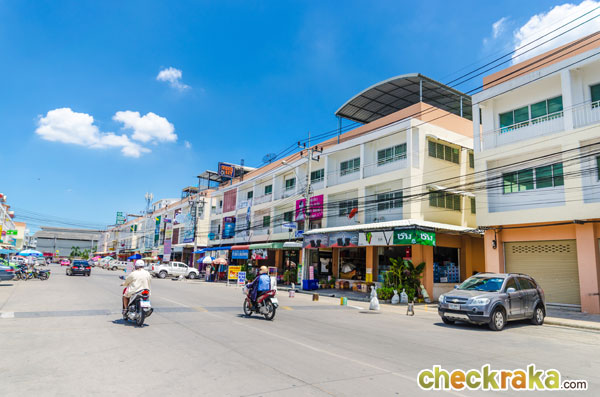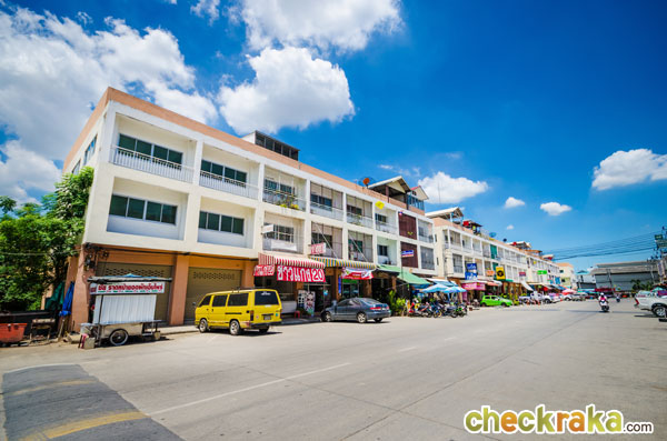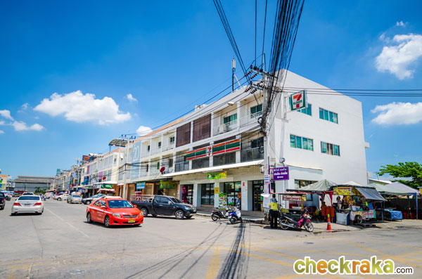ลองเดินเข้าซอยมาตรงๆ นะคะ มีอาคารพาณิชย์อยู่ทั้งสองข้าง ซอยค่อนข้างกว้าง ถ้าขับรถออกมาจากโครงการ