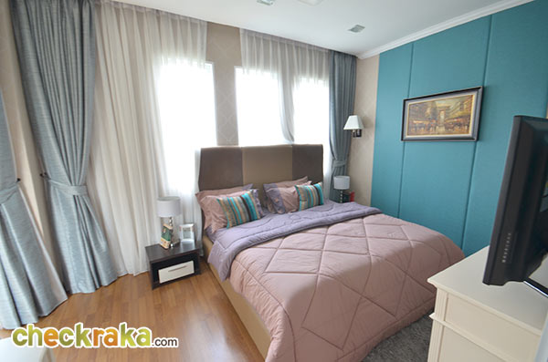 ภายในห้องนอนมาสเตอร์เบดรูมฝั่งขวามือตั้งเตียงนอนค่ะ