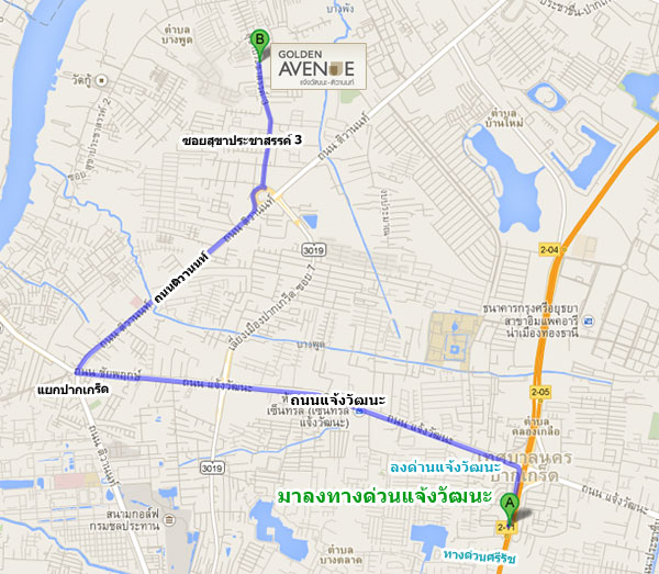เส้นทางเข้าโครงการที่ 1 มาลงทางด่วนแจ้งวัฒนะ