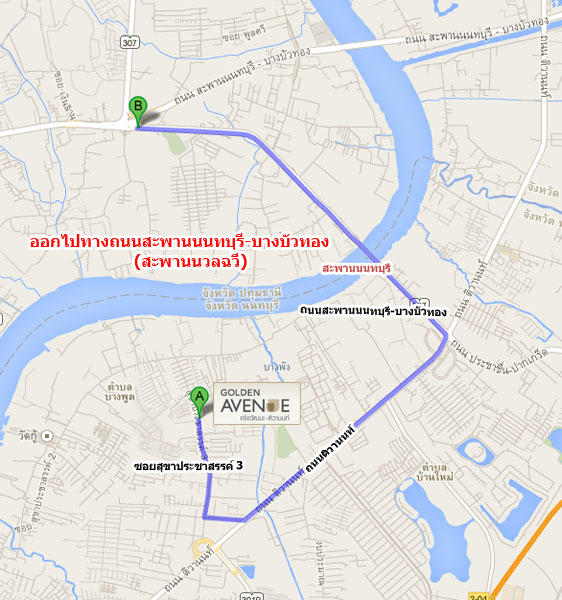 เส้นทางออกโครงการที่ 2 ออกไปถนนสะพานนนทบุรี-บางบัวทอง (สะพานนวลฉวี)