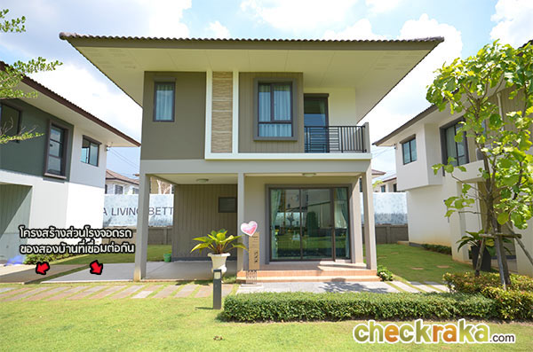 บ้านแฝดแนวคิดใหม่ของทางโครงการ ที่ปลูกบ้านคู่ให้มีพื้นที่เชื่อมต่อกันเฉพาะโครงสร้างส่วนลานจอดรถ