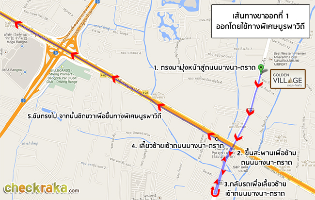 เส้นทางที่ 1 - ขาออกโครงการ ออกโดยใช้ทางด่วนบูรพาวิถี