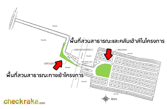 ผังแสดงสวนสาธารณะและคลับเฮ้าส์ของโครงการ 2 จุด คือบริเวณทางเข้าโครงการ และในโครงการ