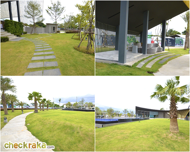 มีการออกแบบเป็นเนินดินสูงต่ำ สวยงามดีค่ะ และยังมีที่นั่งผักผ่อนในร่มให้ด้วย